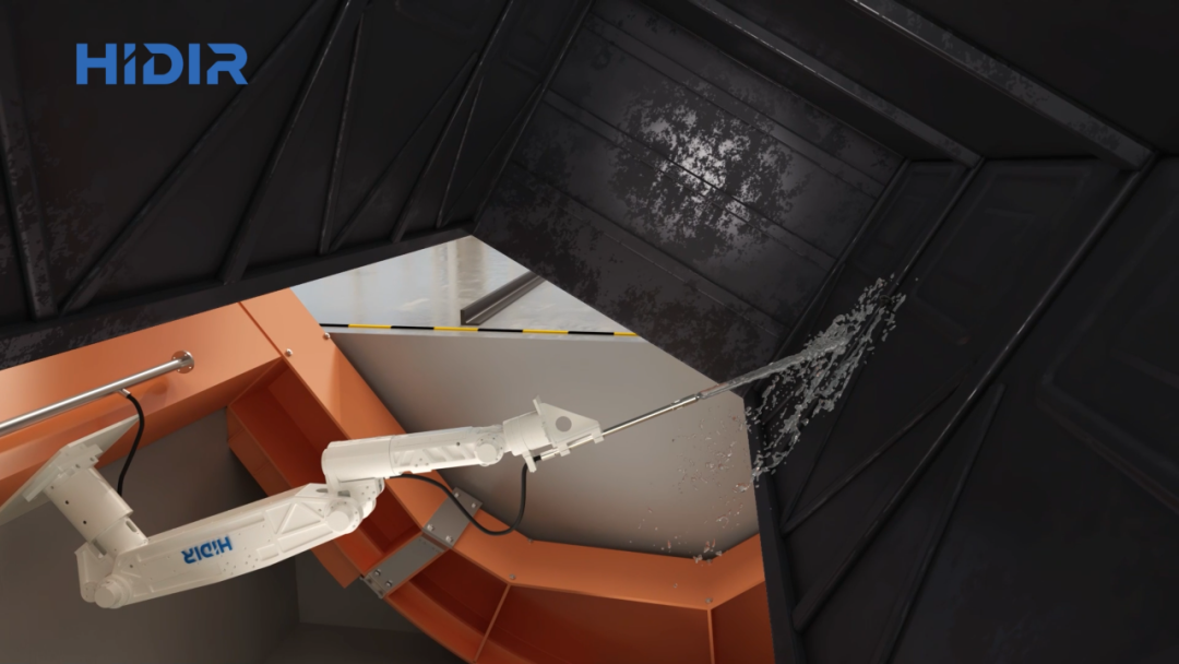 本系統(tǒng)充分利用了機(jī)器人使用靈活的特點(diǎn),通過(guò)智能路徑優(yōu)化對(duì)火車(chē)廂內(nèi)壁和翻車(chē)機(jī)壓車(chē)梁等部位進(jìn)行全方位的清掃。該系統(tǒng)與翻車(chē)機(jī)實(shí)現(xiàn)自動(dòng)連鎖控制,翻車(chē)機(jī)翻轉(zhuǎn)到一定角度后,機(jī)器人自動(dòng)開(kāi)始動(dòng)作進(jìn)行清洗,清掃時(shí)間不超過(guò)25秒,沖洗水量可控,清掃后每節(jié)火車(chē)廂的存留貨物重量相比人工手動(dòng)清洗顯著減少,清洗效率得到極大提升。本系統(tǒng)現(xiàn)在可以應(yīng)用在貫通式和折返式等翻車(chē)機(jī)系統(tǒng)。