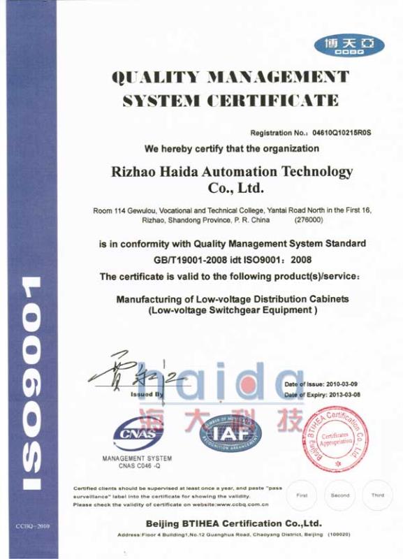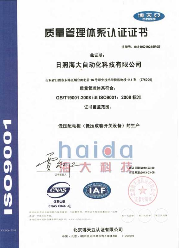 2010年3月9日,我公司獲得質(zhì)量管理體系(ISO9001:2008)認(rèn)證證書(shū)!