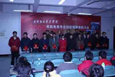 日照職業(yè)技術(shù)學(xué)院2009年機(jī)電類專業(yè)技能競賽包含機(jī)電類專業(yè)機(jī)械CAD競賽、“海大自動化”杯機(jī)電類專業(yè)自動化控制技能競賽、“沙鋼”杯機(jī)電類專業(yè)機(jī)械加工技能競賽三個競賽項(xiàng)目,由學(xué)校教務(wù)處和學(xué)生處主辦,機(jī)電工程學(xué)院承辦,得到了江蘇沙鋼集團(tuán)有限公司、山東海大機(jī)器人科技有限公司等合作企業(yè)的大力協(xié)助。競賽于2009年11月15日拉開序幕,至12月18日圓滿結(jié)束,前后歷時1個多月。參賽學(xué)生500余人;共評出一等獎12名,二等獎25名,三等獎46名?偨(jīng)理田洪芳與學(xué)校領(lǐng)導(dǎo)為獲獎學(xué)生頒發(fā)了證書,并勉勵學(xué)生再接再厲、刻苦鉆研、成長為社會需要的人。