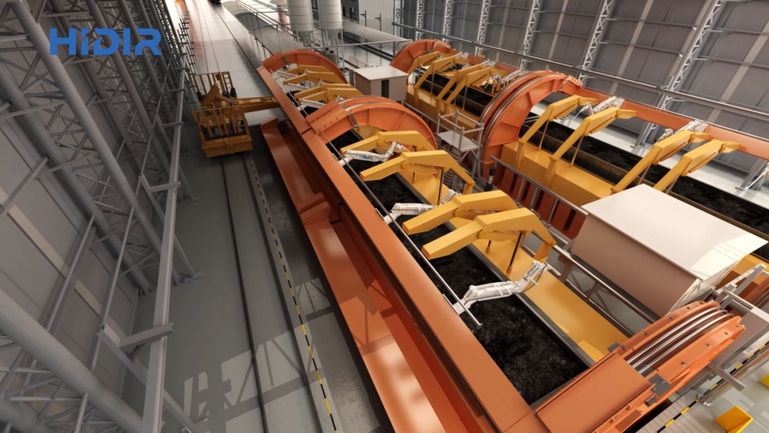 本系統(tǒng)充分利用了機(jī)器人使用靈活的特點(diǎn),通過(guò)智能路徑優(yōu)化對(duì)火車(chē)廂內(nèi)壁和翻車(chē)機(jī)壓車(chē)梁等部位進(jìn)行全方位的清掃。該系統(tǒng)與翻車(chē)機(jī)實(shí)現(xiàn)自動(dòng)連鎖控制,翻車(chē)機(jī)翻轉(zhuǎn)到一定角度后,機(jī)器人自動(dòng)開(kāi)始動(dòng)作進(jìn)行清洗,清掃時(shí)間不超過(guò)25秒,沖洗水量可控,清掃后每節(jié)火車(chē)廂的存留貨物重量相比人工手動(dòng)清洗顯著減少,清洗效率得到極大提升。本系統(tǒng)現(xiàn)在可以應(yīng)用在貫通式和折返式等翻車(chē)機(jī)系統(tǒng)。