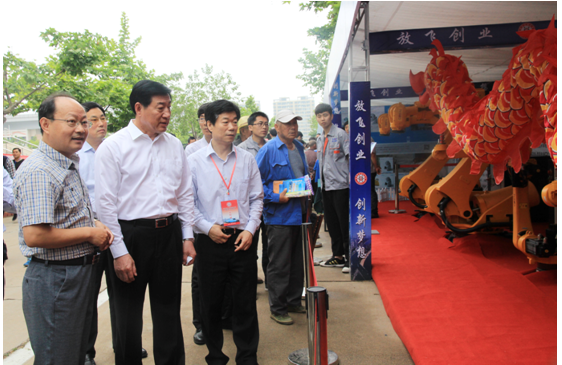 我公司參加此次大賽的創(chuàng)客創(chuàng)新展示。展會(huì)期間,中國科學(xué)院院士、中國自動(dòng)化學(xué)會(huì)副理事長吳宏鑫,中共日照市委副書記、市長劉星泰來我公司展區(qū)視察指導(dǎo),對(duì)我公司工業(yè)機(jī)器人和服務(wù)類機(jī)器人給予充分肯定。